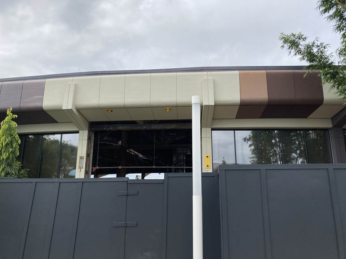 The new restaurant that we’ve been waiting for as part of an expansion to the Mission: SPACE pavilion, Space 220, is nearing completion, with these walls currently covering the marquee and entrance to the restaurant that will take us 220 miles above the Earth and into a space station for a dining experience that can only be described as “out of this world.”