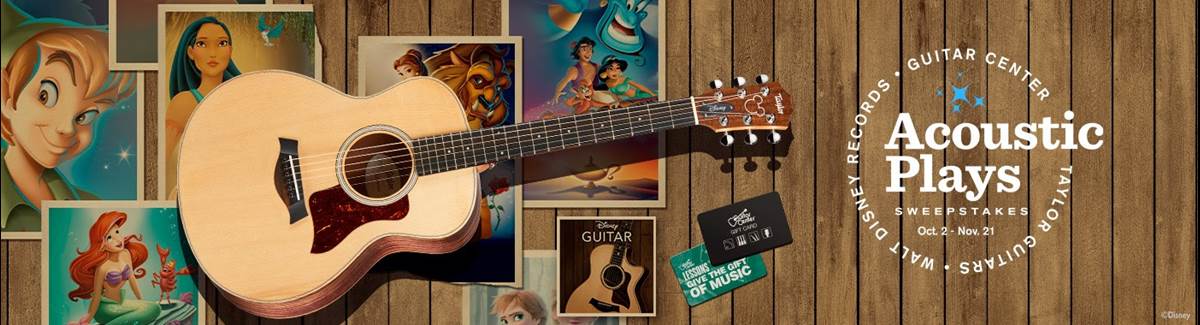 - Walt Disney Records, Taylor Guitars and Guitar Center are joining forces to kick off one incredible sweepstakes celebrating many of the classic Disney songs performed acoustically by a variety of artists.