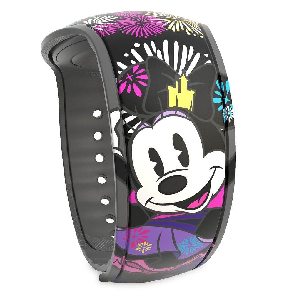 A magical ending to a magical collection! The grand finale of Minnie Mouse: The Main Attraction is all about the beauty of the castle at night and dazzling fireworks shows that celebrate the end of the day. Minnie is dressed in a purple satin dress with fuchsia accents at the neck and shoulders, and a black tulle decorated with fireworks lays over the skirt. A golden castle adorns Minnie’s bow and the bow on the matching Ear Headband. MerchPass for this collection opens on December 8th.