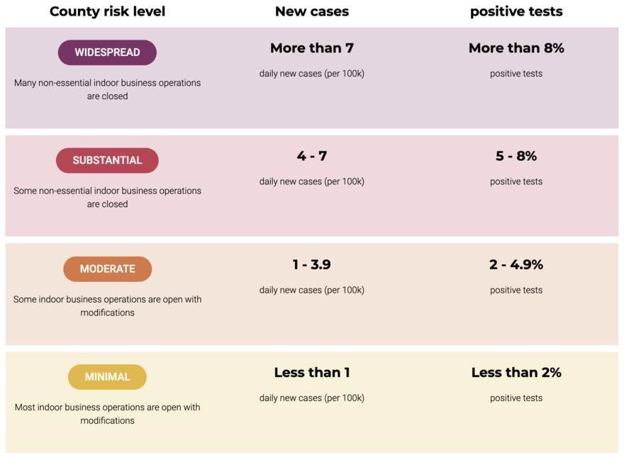 - Currently Orange County—home of Disneyland—remains in the “Substantial” tier reporting 4.6 cases per day per 100,000 people and a positivity rate of 3.2%.