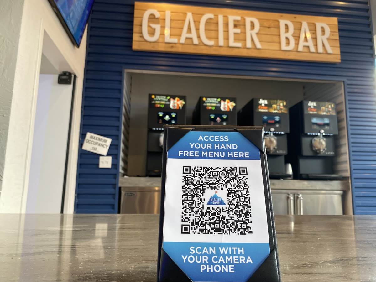 As most restaurants are these days, Glacier Bar has no menus and can all be accessed by scanning a QR code that is displayed both on the bar and tables. Across from the bar, guests can also find a bank of Coca-Cola Freestyle Machines that they can use.