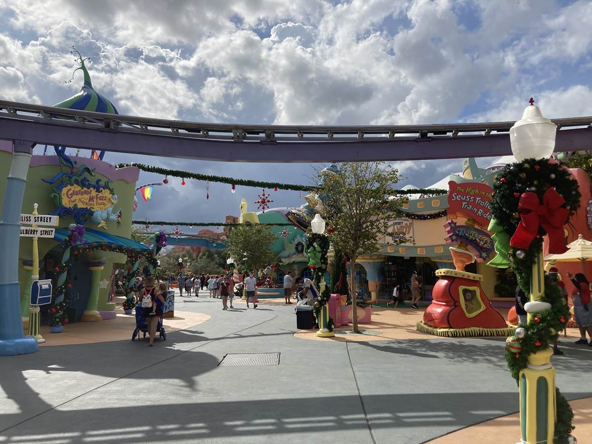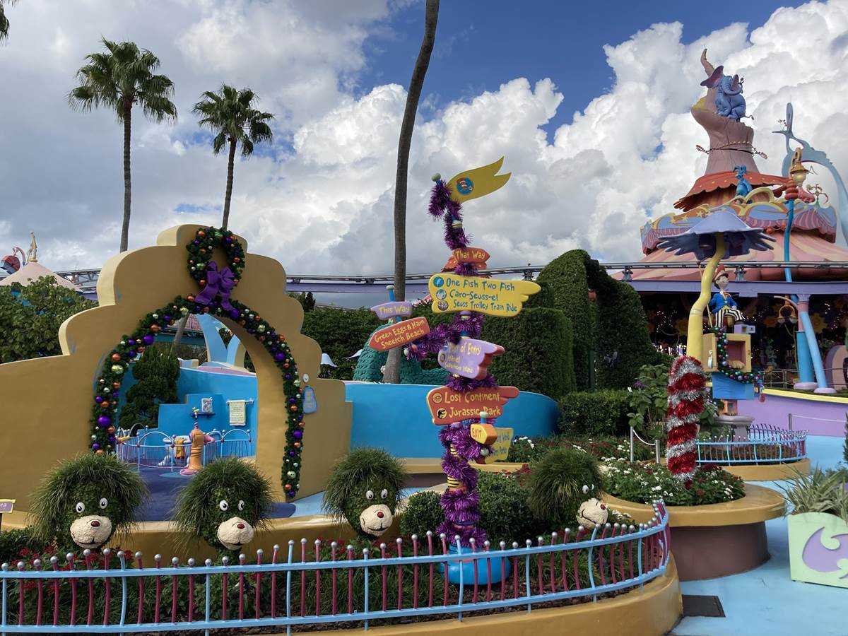 As guests make their way around the park, they’ll find that Seuss Landing is ready to start up the Who-liday season. Not only are the animated trees up to welcome guests to the land, but the entire section of the park is decked out and ready to go.