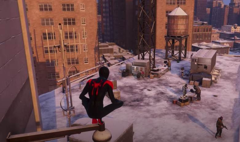 - With the suit in use, the game mirrors the animation of Sony’s hit animated Spider-Man film, even recreating an iconic moment from the movie.