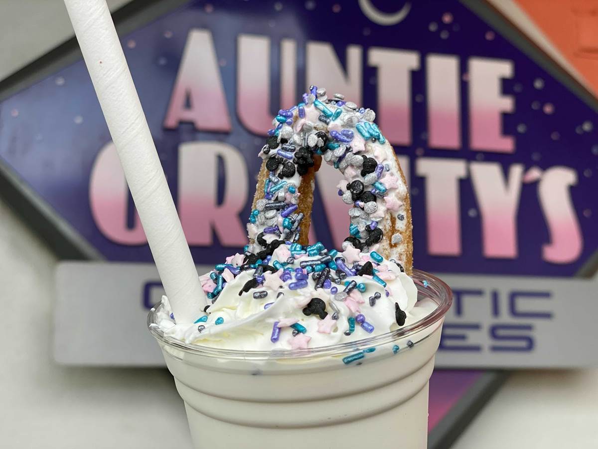 - One of the offerings is the Just a Dream Away Shake, featuring a whole Churro(!), available at Auntie Gravity’s.