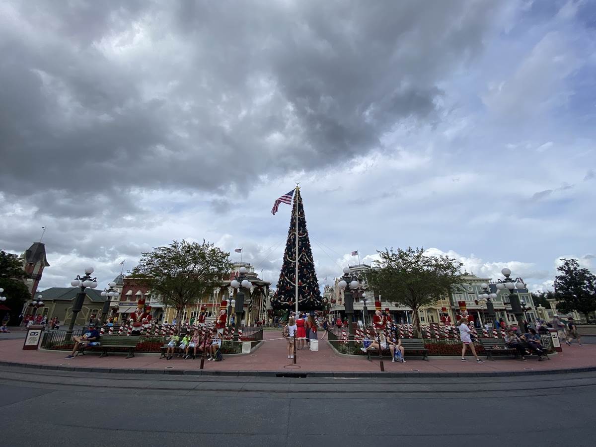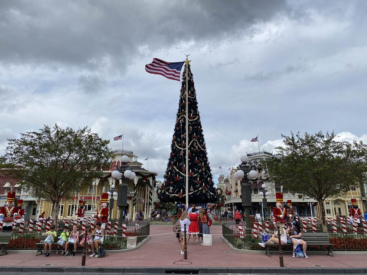 - Once inside the park, guests will of course see the giant Christmas tree right in th middle of Town Square, surrounded by more holiday decorations which lead guests down Main Street, U.S.A.
