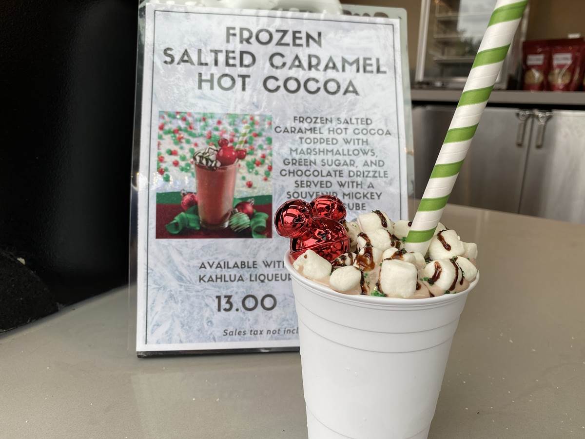The treats have arrived at Disney’s Hollywood Studios as well with a Frozen Salted Caramel Hot Cocoa that comes with a light-up Mickey ornament.