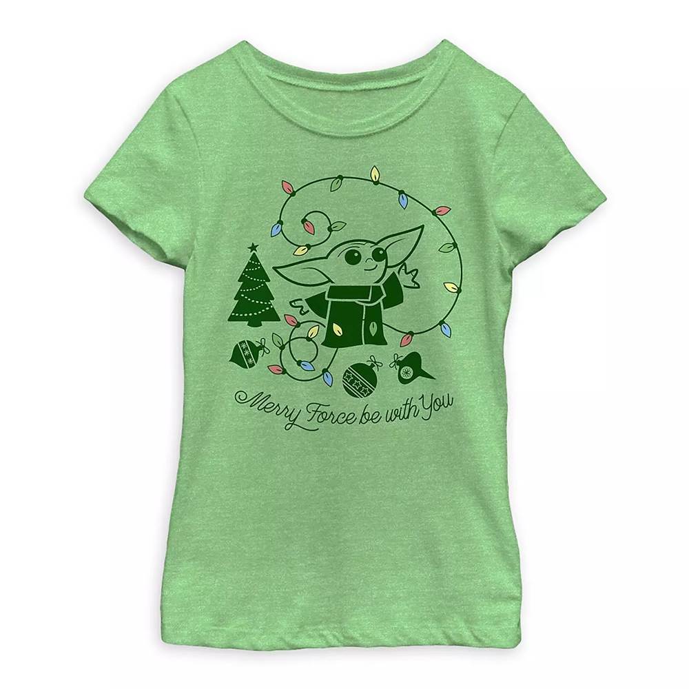 The Child ''Merry Force Be With You'' T-Shirt for Girls ($22.99) - “Season's greetings from the Child who's decking his Christmas tree on this holiday kids' tee. The festive design, inspired by Star Wars: The Mandalorian on Disney+, will spread good cheer with its ''Merry Force Be With You'' messaging.”