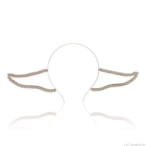 “Rose Gold meets luxurious opal Swarovski crystal cup chain. For the Star Wars fans who need a bit more sparkle in their life! This headband inspired by Yoda highlights the silhouette of the iconic ears, showcased in the intricate molding of the piece.”