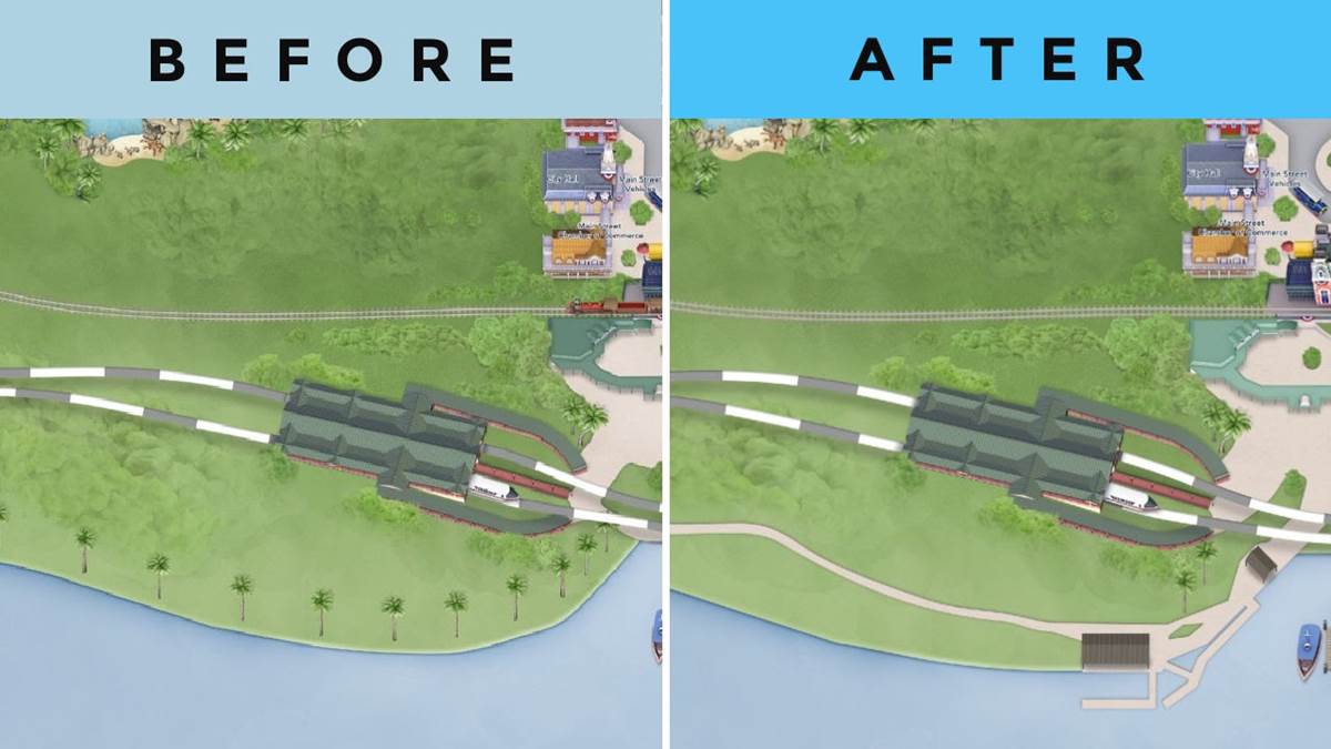 Our last before and after shows the end of the walkway on the Grand Floridian side. You can see that it crosses under the Monorail track to connect Guests near the marina at that resort.