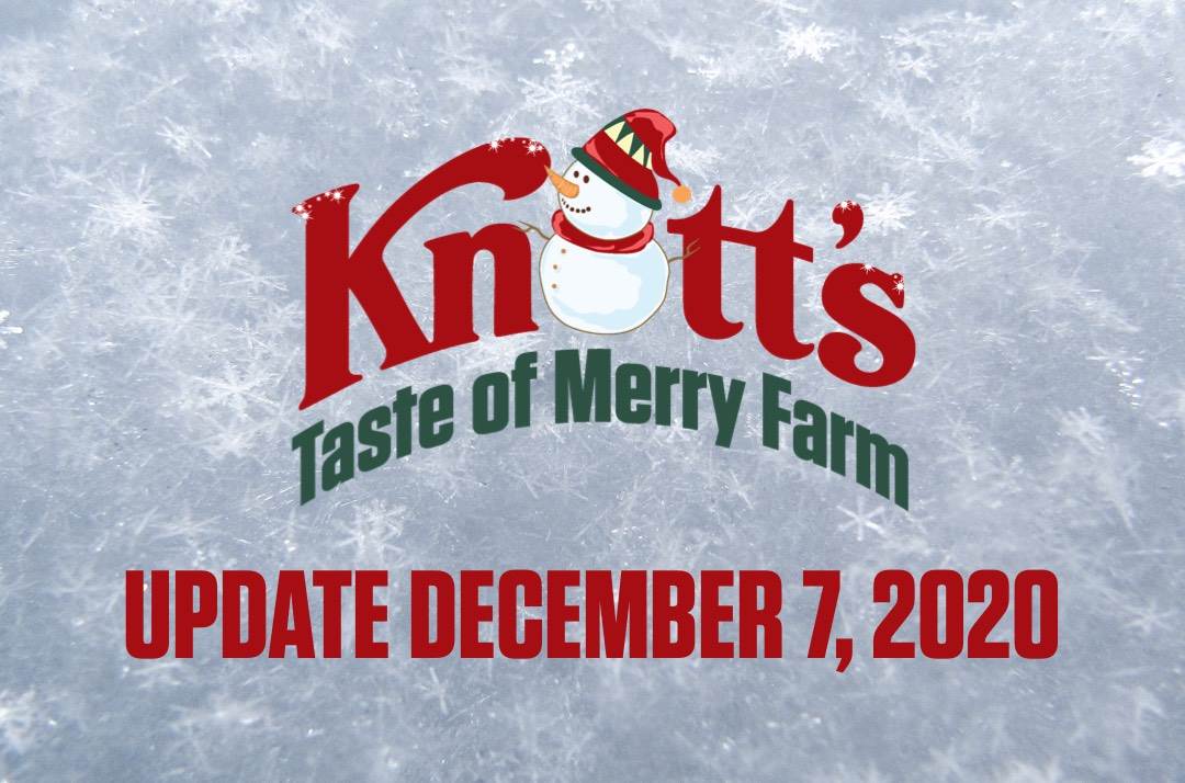 - A tweet from the official Knott’s Berry Farm account has announced the disappointing news that due to state-enforced stay-at-home orders, the Taste of Merry Farm events scheduled to take place on various dates from December 11th through December 26th will be cancelled as the venue will be closed.