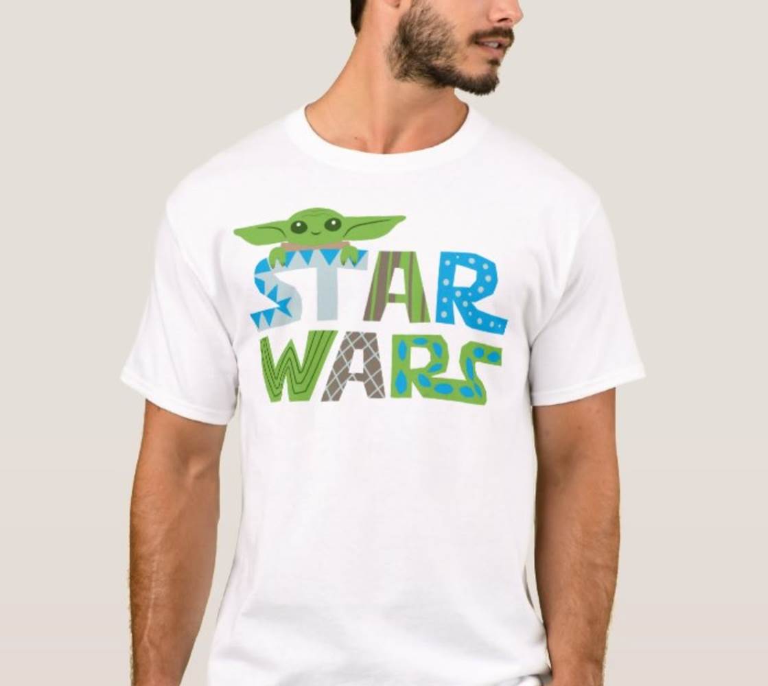 Cute Stylized Star Wars Logo With The Child T-Shirt ($19.95) - “Comfortable, casual and loose fitting, our heavyweight t-shirt will easily become a closet staple. Made from 100% cotton, it wears well on anyone. We’ve double-needle stitched the bottom and sleeve hems for extra durability.”