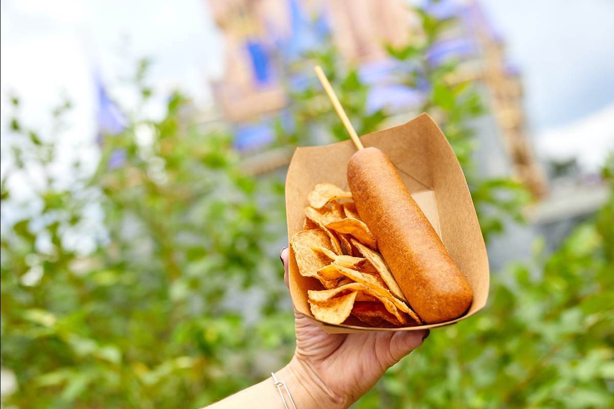 - Fans that crave the hand-dipped corn dogs of the Disneyland Resort can now bite into this iconic treat on a stick at Sleepy Hollow in Liberty Square at the Magic Kingdom. The corn dogs are hand-dipped in sweet corn batter then perfectly fried, allowing for a warm crunchy, sweet taste that enrobes a salty all-beef dog. These dogs are served with house-made potato chips.