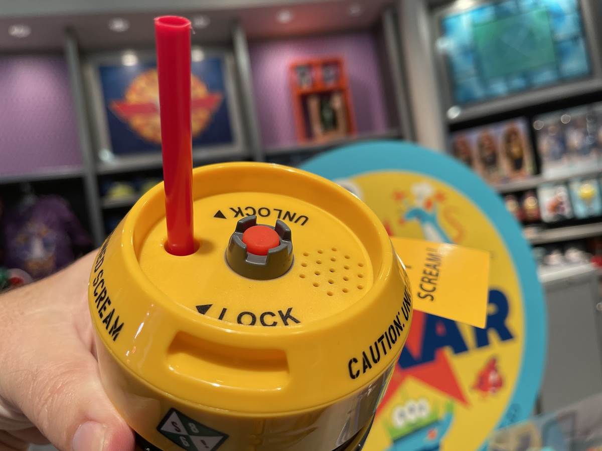 A popular sipper designed to look like a Monsters, Inc. scream canister has been spotted at the ImageWorks store at EPCOT. Though not a new item, it has been exceptionally hard to find.