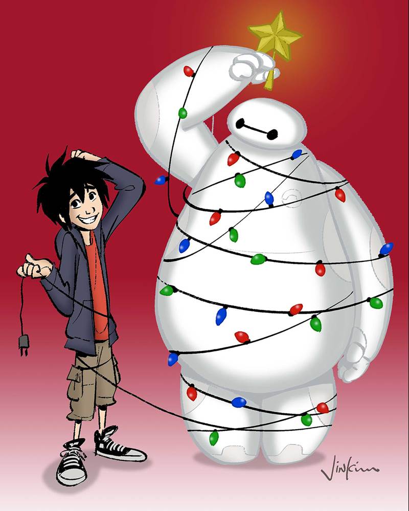 Hiro’s personal healthcare companion Baymax is doubling as his Christmas tree this year in this funny card. It looks like Baymax is also powering the lights and the star all on his own! Jin Kim is an animator and character designer who started in Disney Television Animation on hit shows like Goof Troop and Darkwing Duck before moving to big screen features like Hercules, Tarzan and The Princess and the Frog. Most recently, he’s been a character designer on films like Tangled, Big Hero 6, Zootopia and Frozen 2.