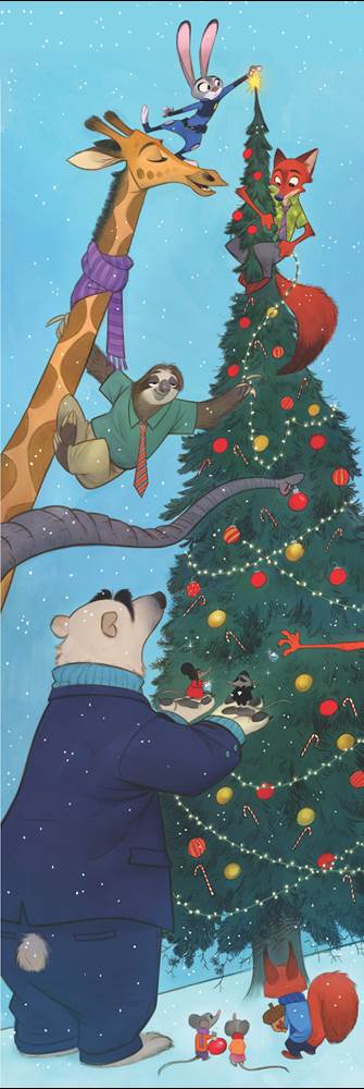 It’s Christmas in Zootopia and everyone’s help is needed to decorate the tree. Judy Hopps and Nick Wild handle the most dangerous jobs with the assistance of a giraffe while Flash slowly strings lights. Even Mr. Big and Fru Fru are joining in! Cory Loftis was a character designer on the film who has also contributed designs to Frozen and Wreck-It Ralph.