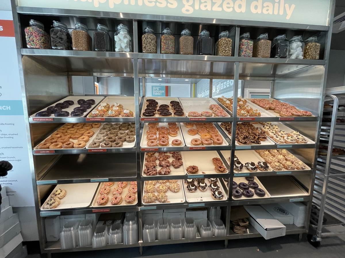 Paper menus are also available, but the best way to pick out a treat is to look at the glass donut rack.