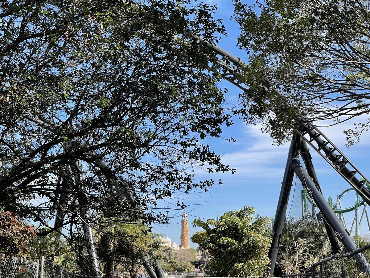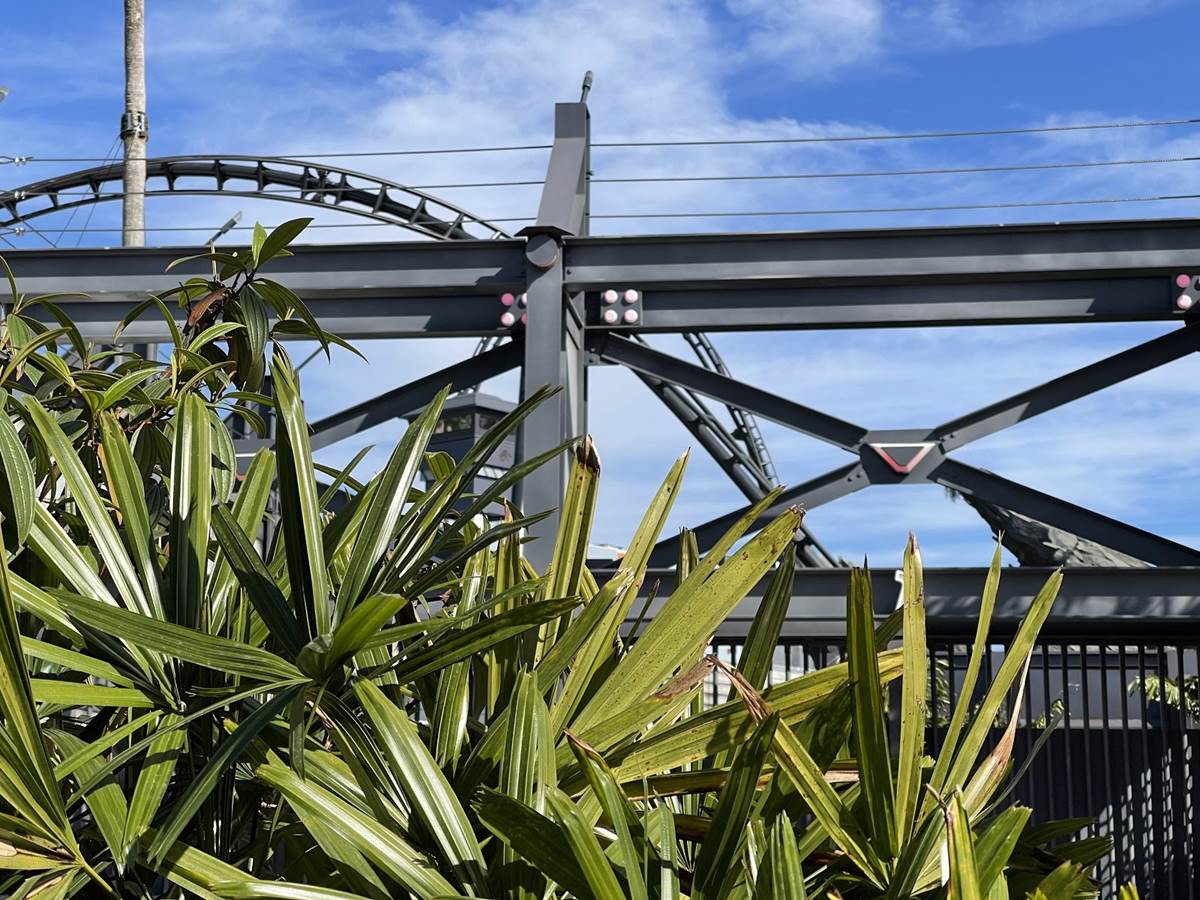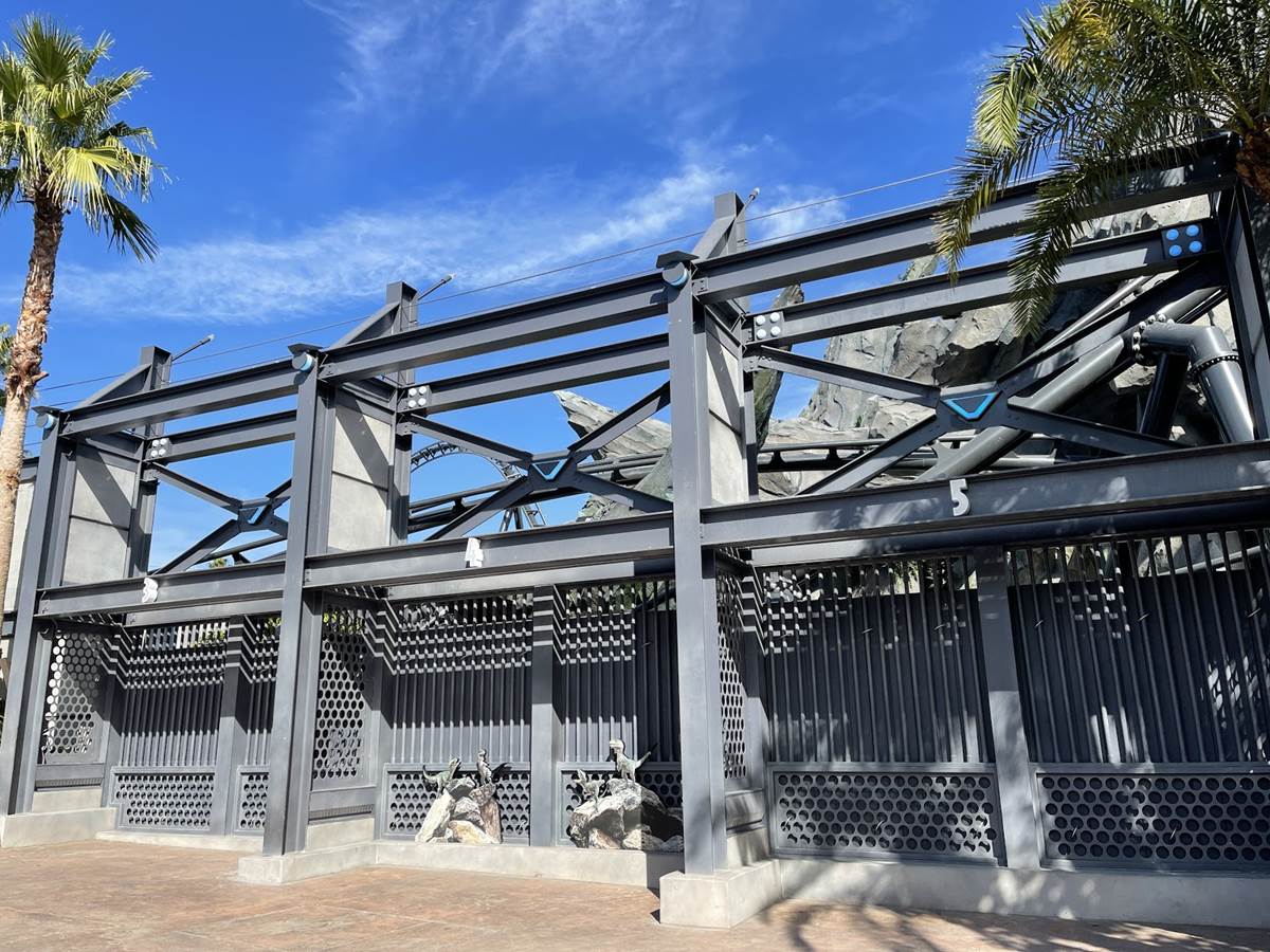 - Construction is a loose term as most of the visible work and coaster track is complete, and much of the efforts have been moved to the interior of the attraction. While it wasn’t occurring while we were there today, coaster trains have also been seen traversing the course of the layout while Team Members continue to test and adjust the new high speed thrill ride.