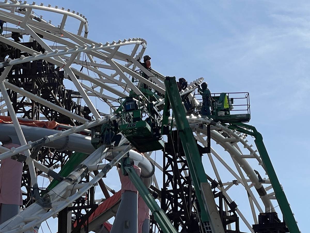 - In previous updates we noted that the coaster track is covered and wrapped but in these shots you can see in portions of the track that is no longer the case. It is unclear if there is a reason for that or if the wrapping has succumbed to the Florida elements.