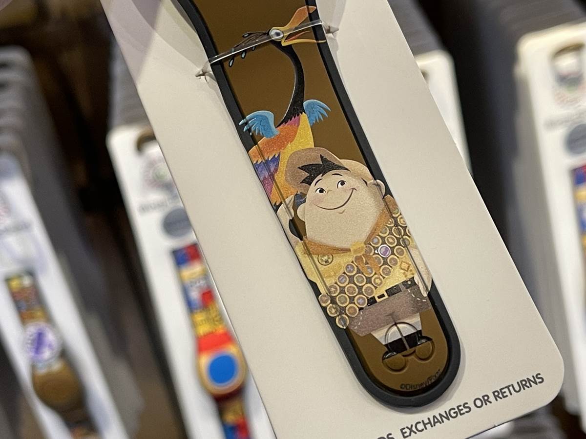 “The wilderness must be explored!” That’s the motto of the Wilderness Explorers in Disney Pixar’s Up and now you can earn your badges with a new MagicBand we found at Walt Disney World. Inspired by Russell, one side of the brown MagicBand has all of his badges while the other side features Russell with the snipe he found, Kevin.