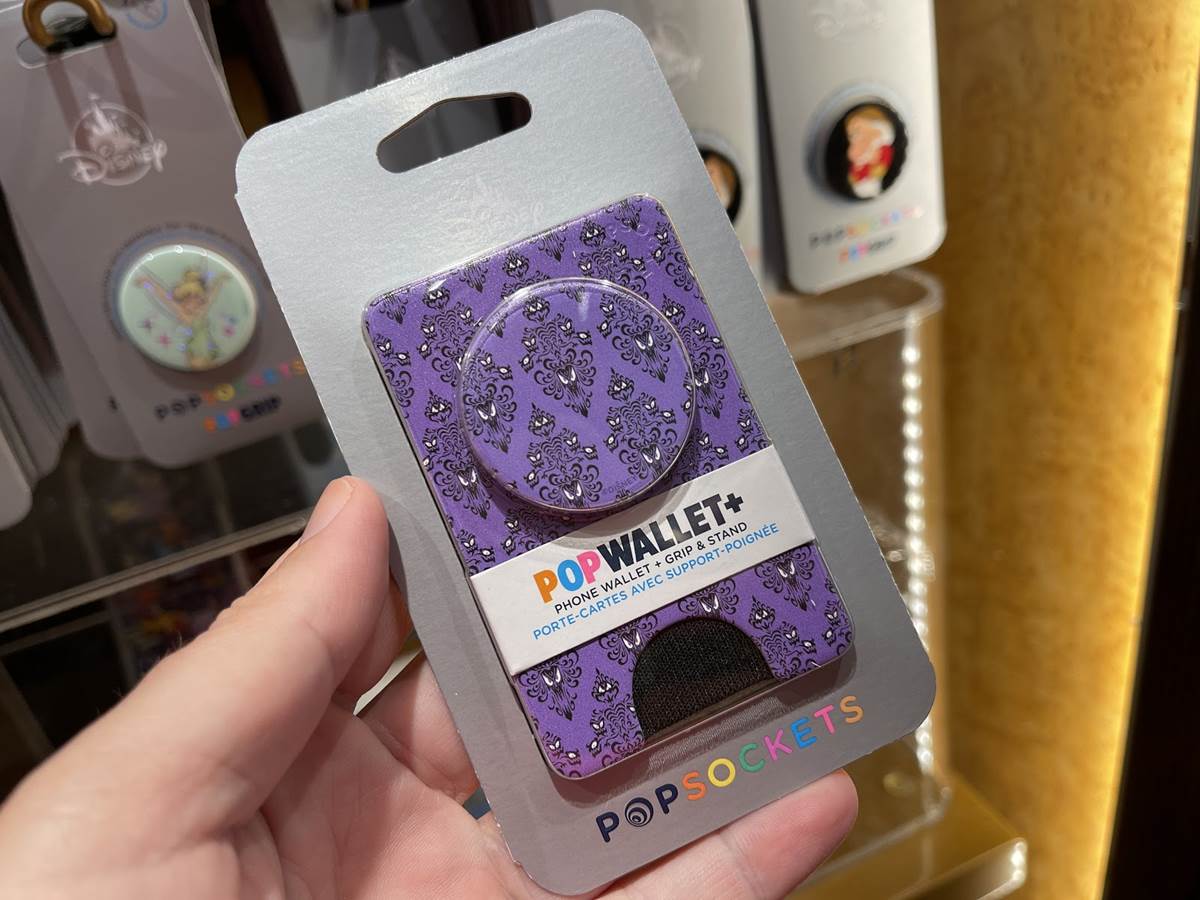 More than just a PopSocket, we found these PopWallets in the Dark Room on the park’s Hollywood Boulevard. The Popwallet not only includes the Popsocket, but also a sleeve to hold cards and cash on the back of your phone. The wallets feature Mickey Mouse, Stitch, and the Haunted Mansion Wallpaper. The Popwallets sell for $29.99