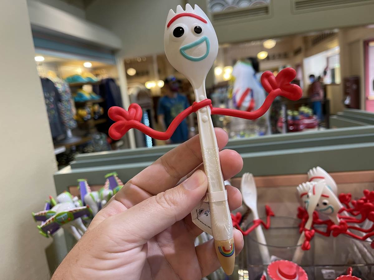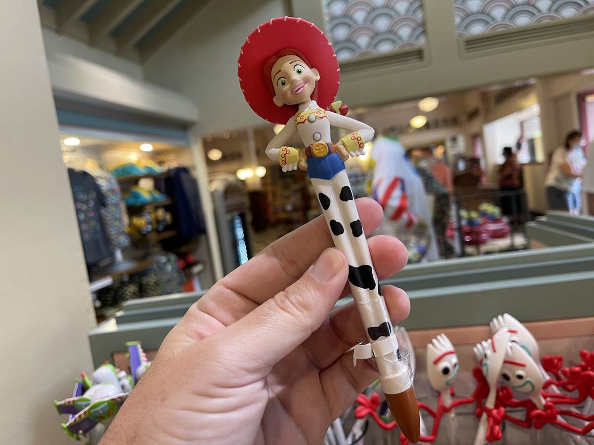 While the Pixar store on Sunset Boulevard is still closed, we can find merchandise featuring characters from their films scattered throughout, including some new pens featuring Jessie the Yodeling Cowgirl from Toy Story 2, Toy Story 3, and Toy Story 4, and Forky from Toy Story 4. Interestingly, Forky is branded with a Pizza Planet logo on his handle. No reference of this was made anywhere in the film in which he originates. Both pens sell for $12.99
