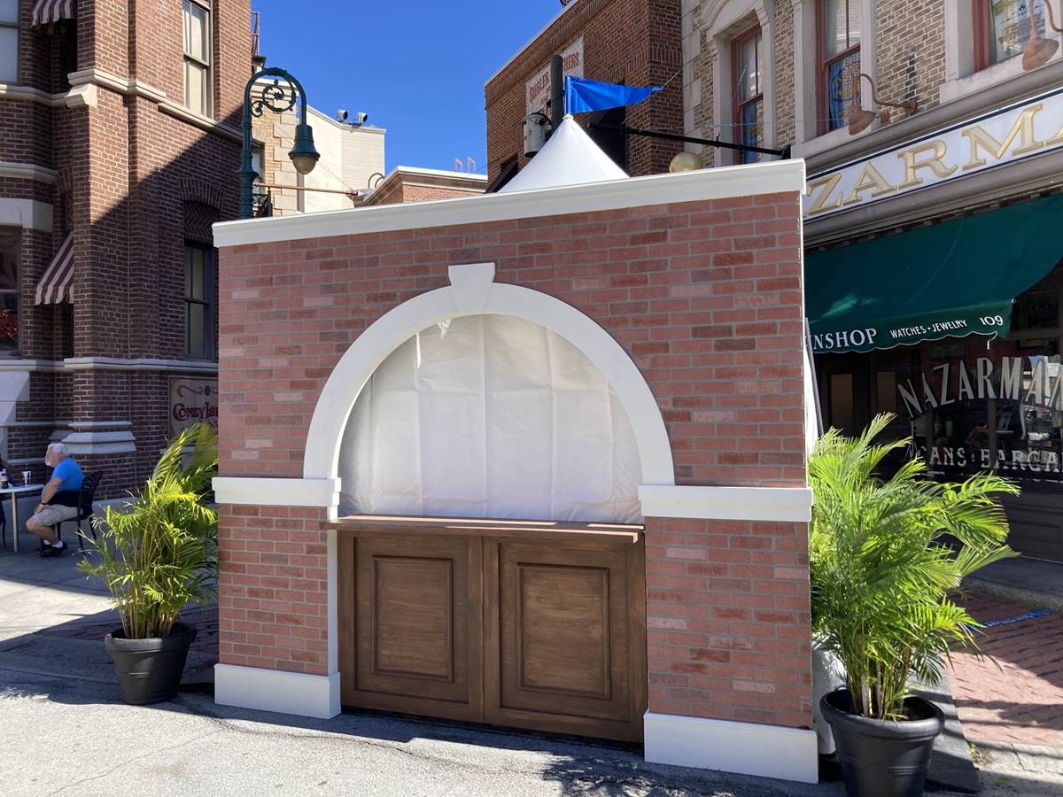 - The facade for the Mardi Gras Tribute Store went up today in the New York section of the park.