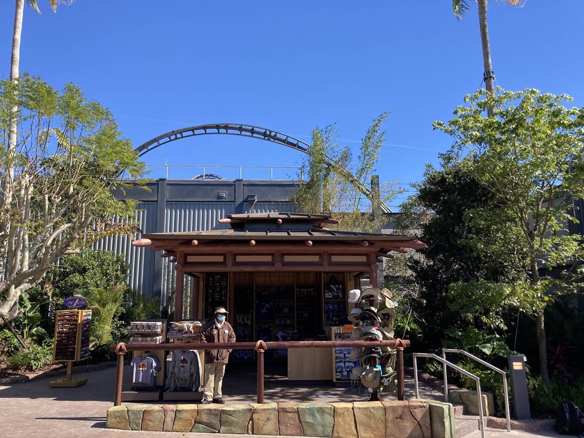 - While at the park we also spotted this new merchandise kiosk, open and ready to peddle the wares offered for the new attraction (or maybe relocated merch depending on where the attraction inevitably exits) near the Discovery Center but before the River Adventure.