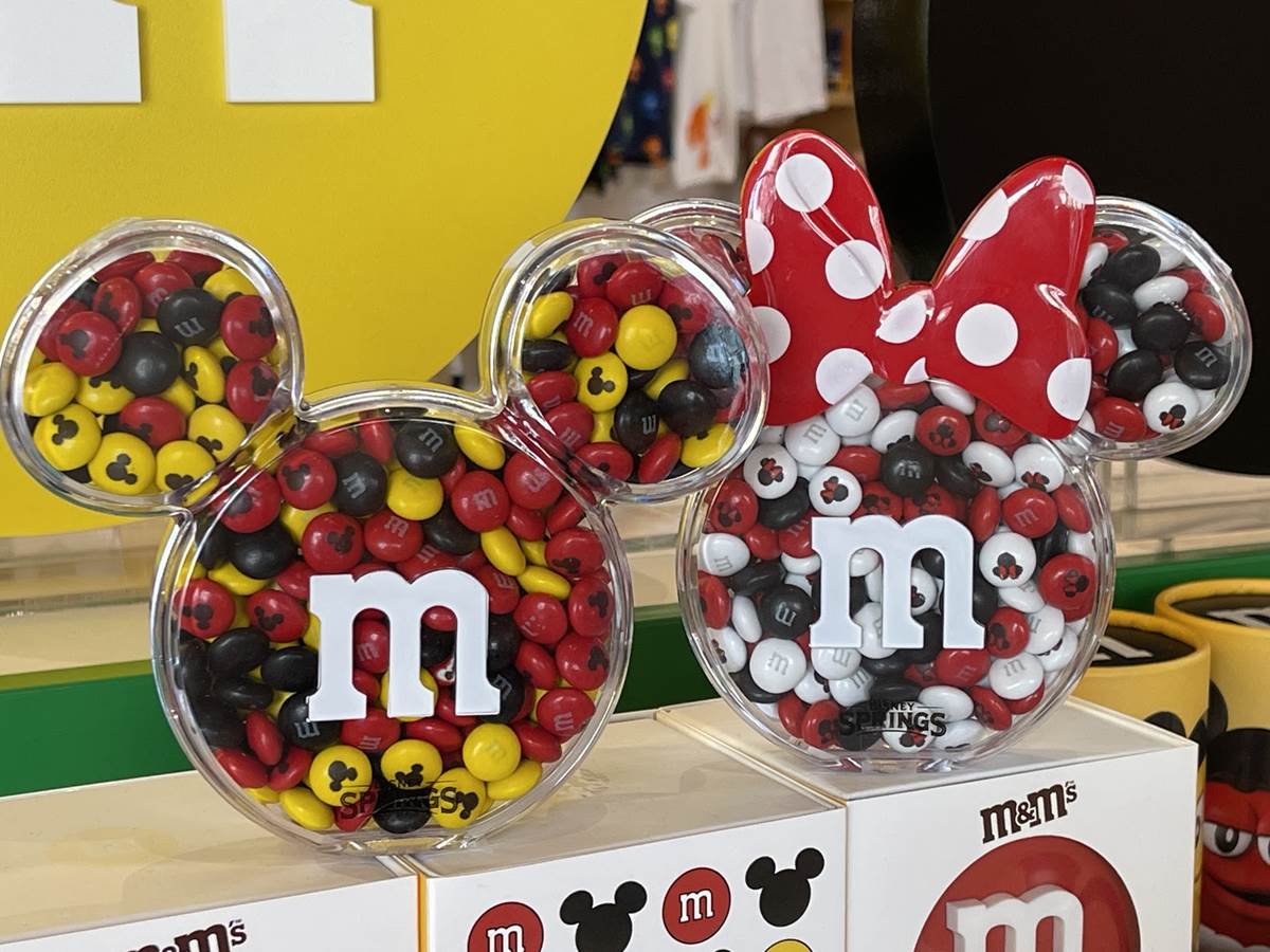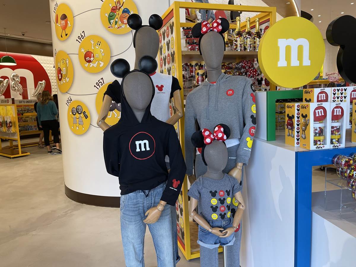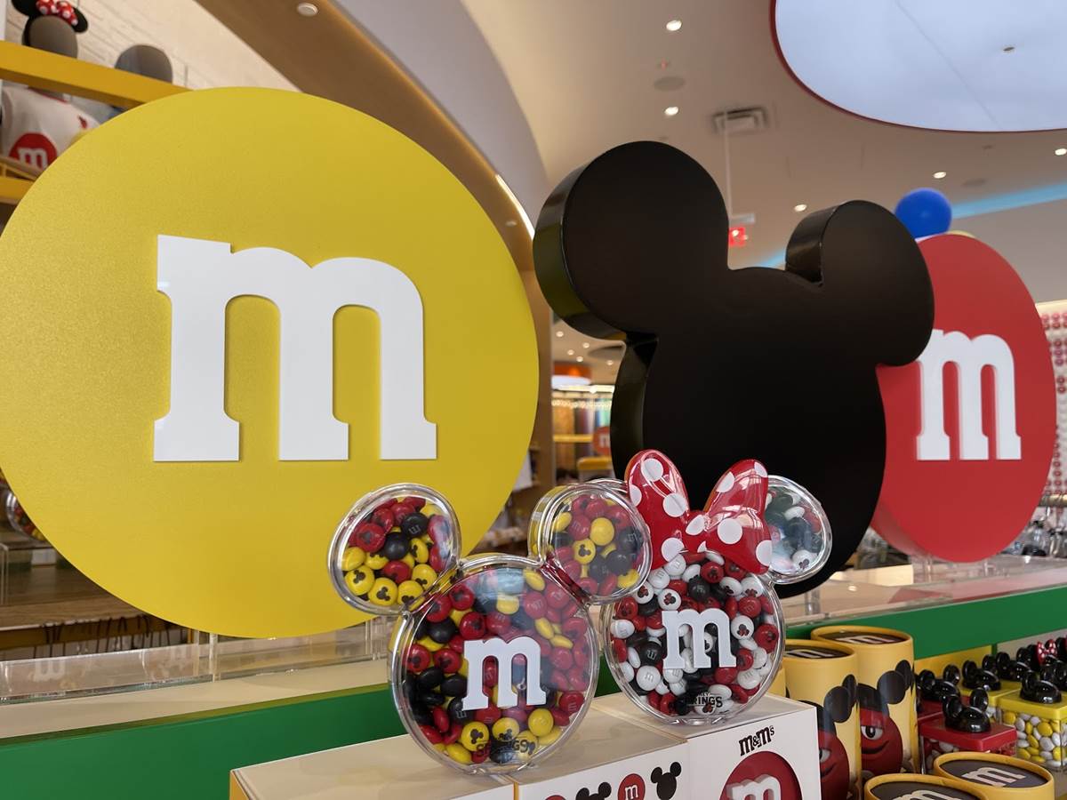 Earlier this month, it was revealed that this M&Ms World location would be home to new Mickey and Minnie Mouse M&M’s designs and packaging sold exclusively at Disney Springs. If that’s not exciting enough, the new store also offers a vast assortment of whimsical, Mickey-silhouette branded merchandise, including apparel and accessories.