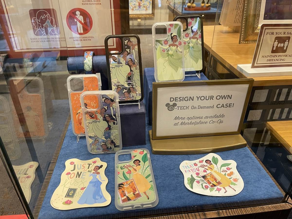Also at The Art of Disney, there is a display showing the different designs you can have made for phone cases and magnets at Marketplace Co-Op featuring Tiana.