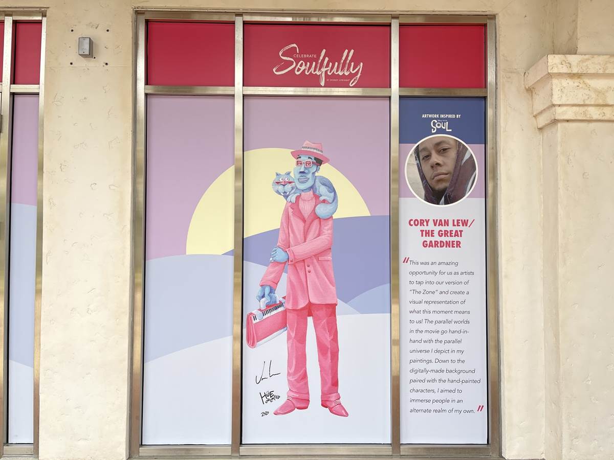 This artwork was spotted near The LEGO Store by Bee Harris titled “The Village.” In all, there are four new art displays inspired by Disney and Pixar’s Soul created by emerging Black artists. Each art display reflects the artist’s interpretation of the film.