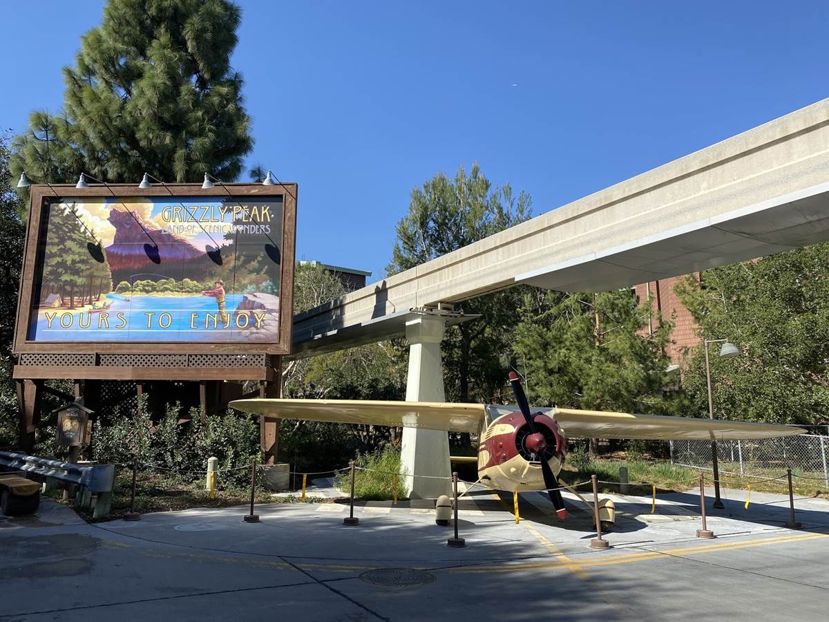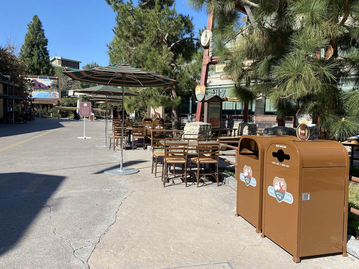 Meanwhile, in the Grizzly Peak Airfield, the barrier rope has been extended out once again to allow for dining at Smokejumpers Grill and the tables that have been placed in front of the Soarin’ building. Interestingly, the rope has been extended further then it was previously, going up to the Grizzly Peak billboard and allowing for guests to get up close to the Cessna plane that has been parked underneath the billboard since the park opened 20 years ago.
