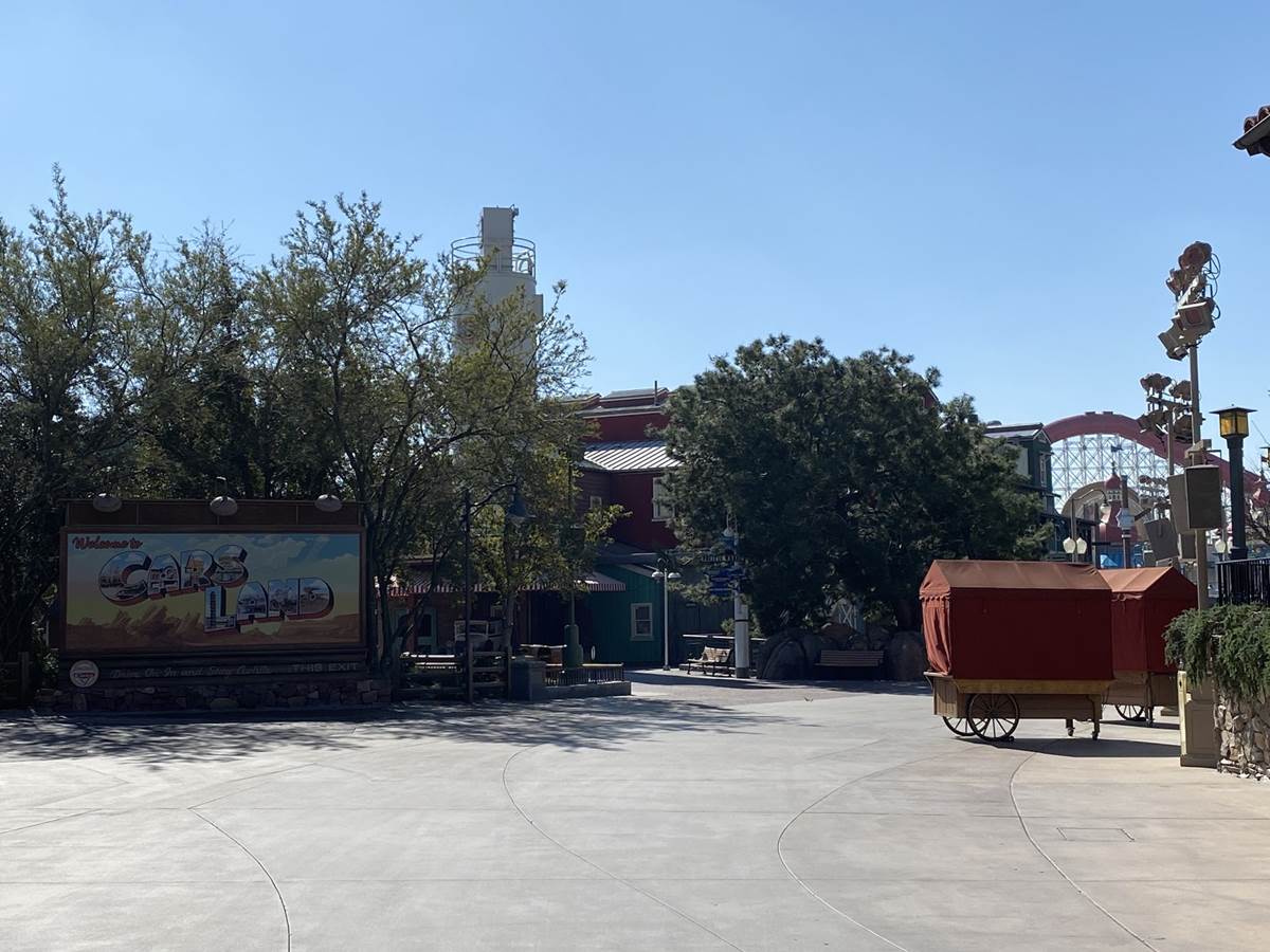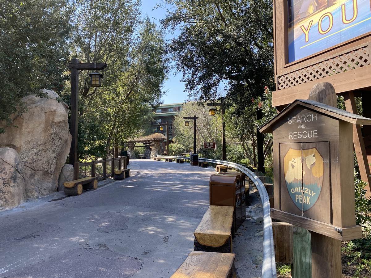On the other side of the mountain, the rope is still where it previously was, allowing glimpses of Avengers Campus, stopping guests just before Cars Land at the Walt Disney Imagineering Blue Sky Cellar and Golden Vine Winery.