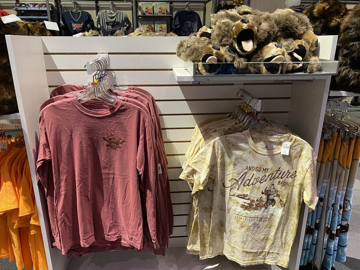 Over in the Backlot Premiere Shop, we spotted some gear featuring two classic Disney California Adventure attractions, Grizzly River Run and Soarin’. The apparel features the attraction logos, some mottos, and even a catchphrase from the innovative flight simulator that wowed guests on its debut in 2001.