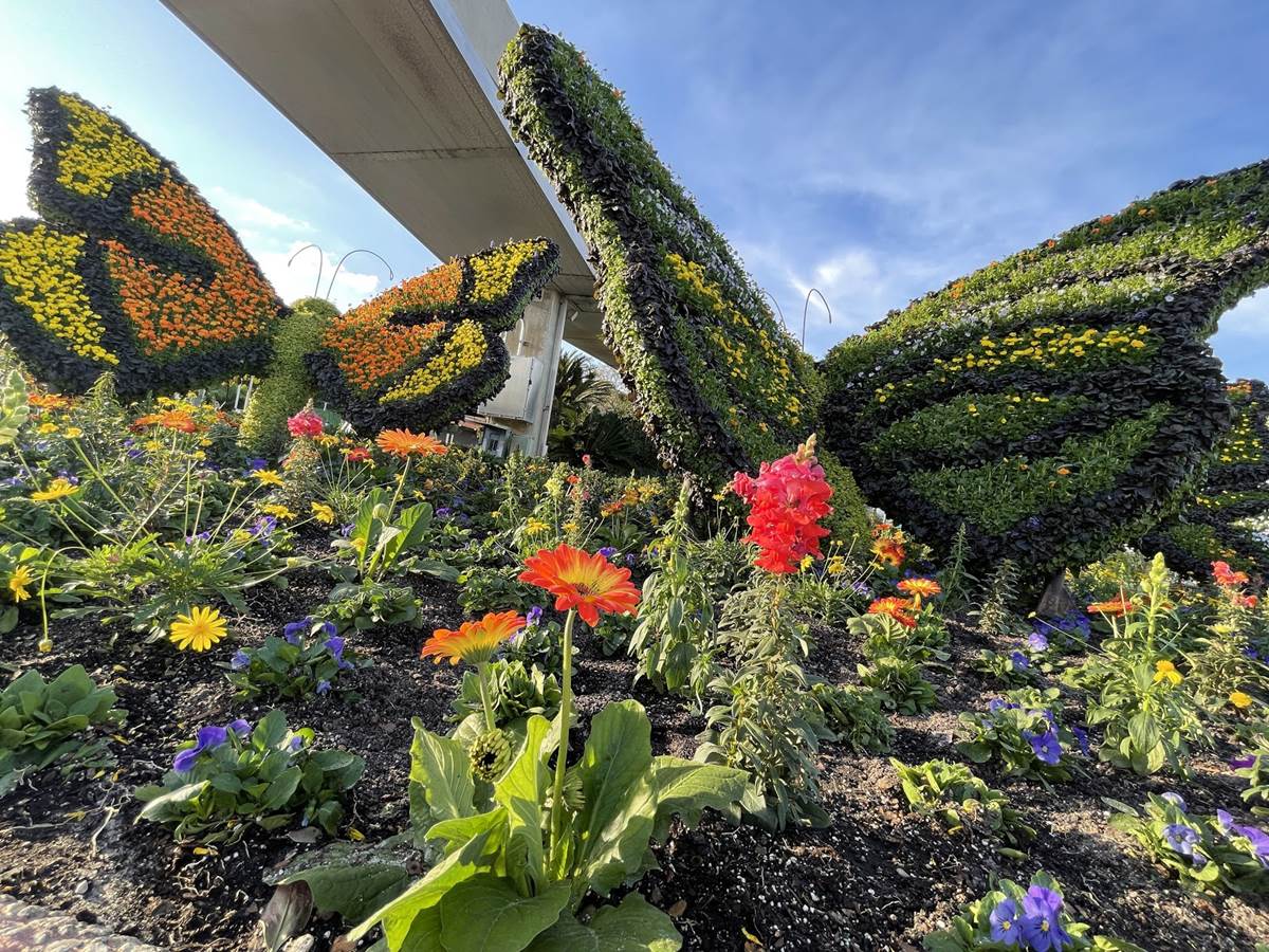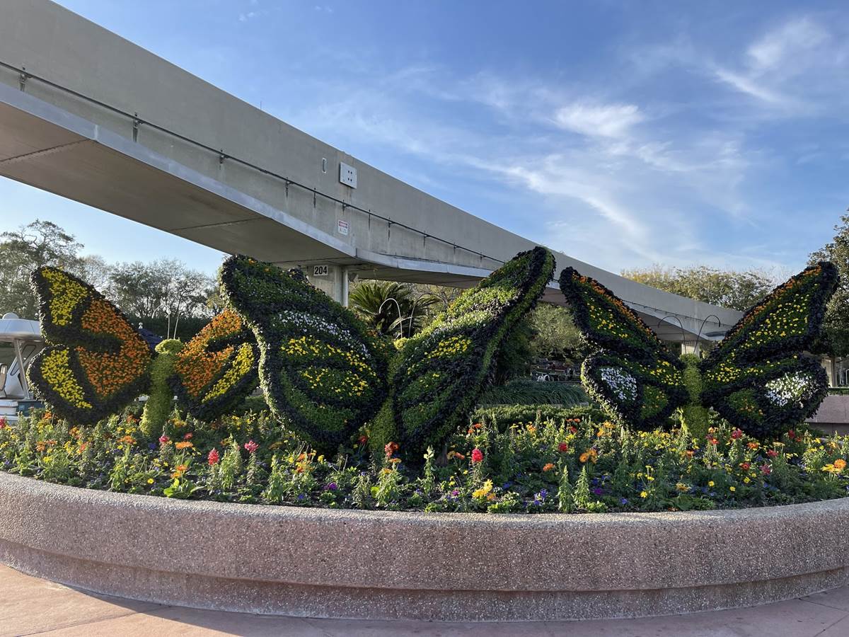 The first topiaries have been installed, a trio of butterflies that have historically welcomed Guests into a live butterfly viewing experience.