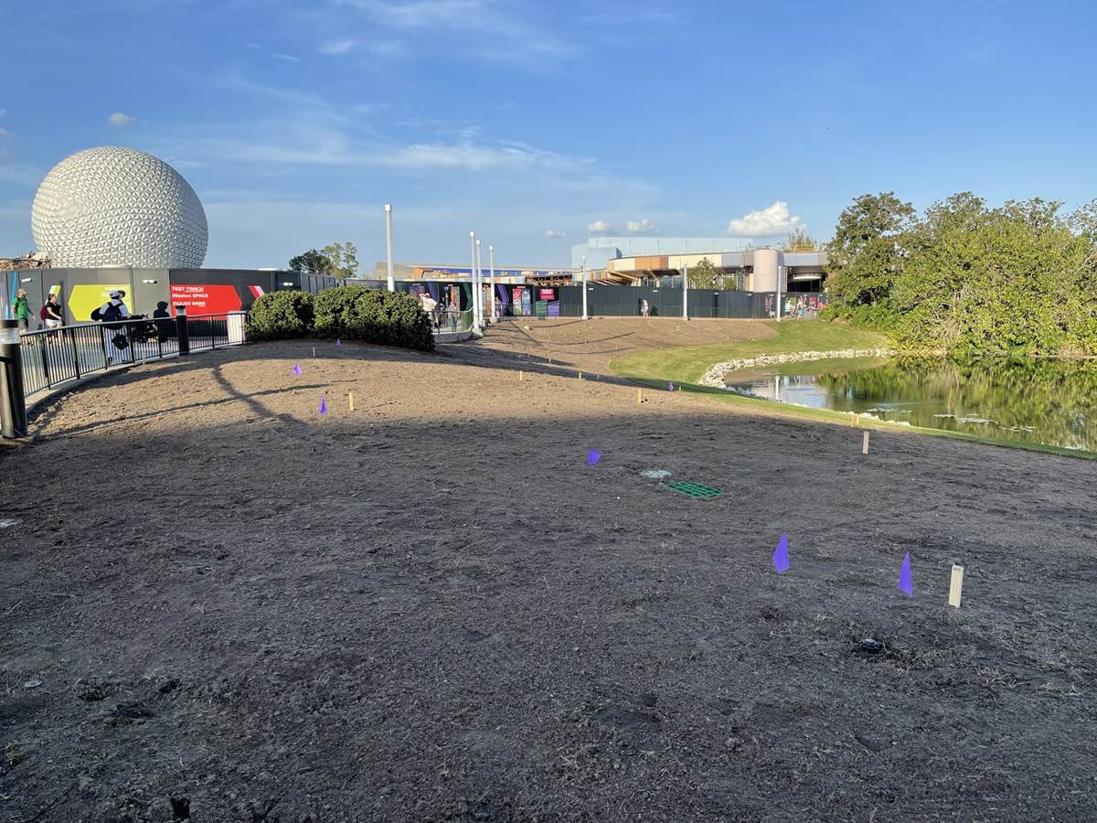 This stretch of grass along the water hasn’t been pulled up yet, but you can see markers in the ground where it will have to be removed.