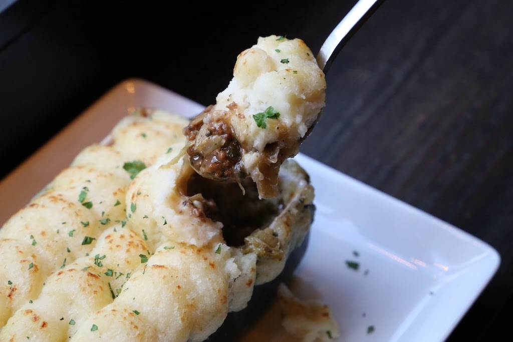 - Shepherd’s Pie- Stout-braised ground beef, peas, carrots, onions, shredded cabbage, potato puree