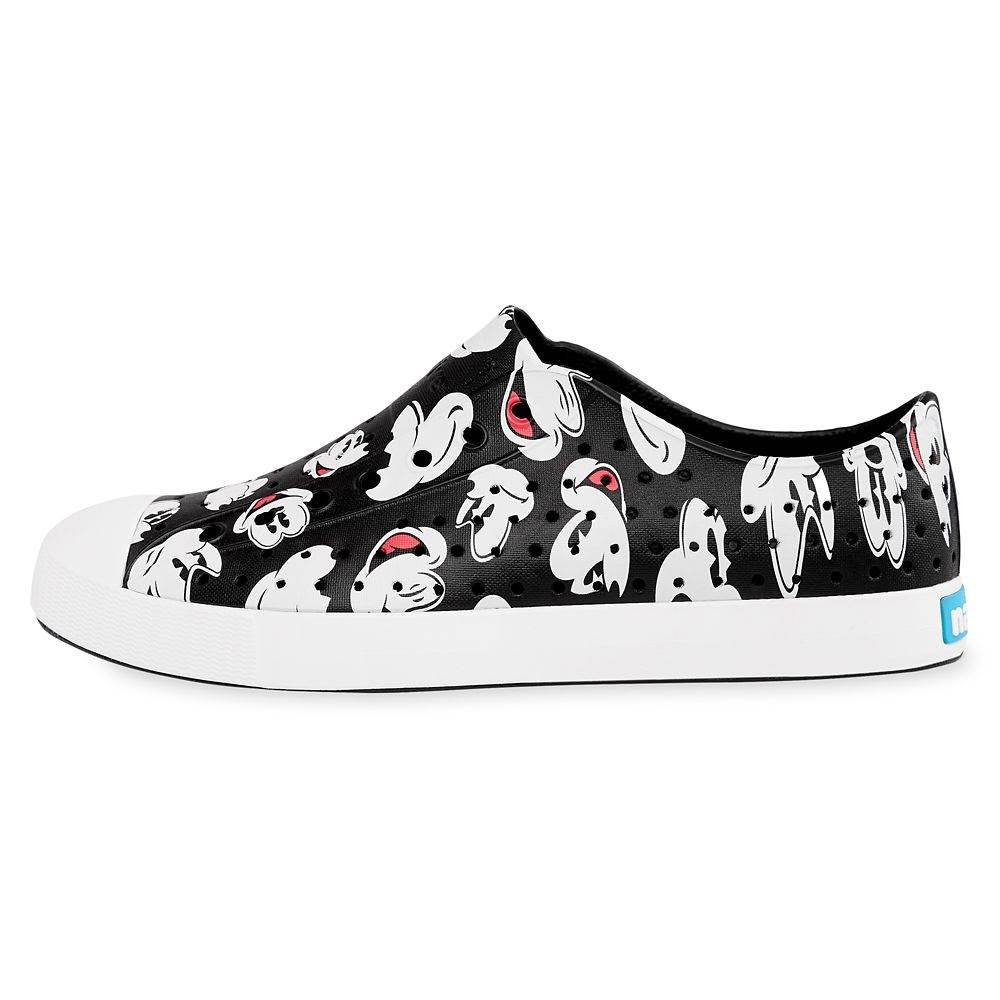 - The adults’ Jefferson shoe is Native Shoes’ original EVA all-star, embodying the company’s token lightness with a durable rubber rand and toe. Available in a black Mickey all-over print and a red Minnie all-over print, the shoe is shock absorbent, odor resistant, and hand washable. Both these styles come in women’s size 5 to men’s size 12.