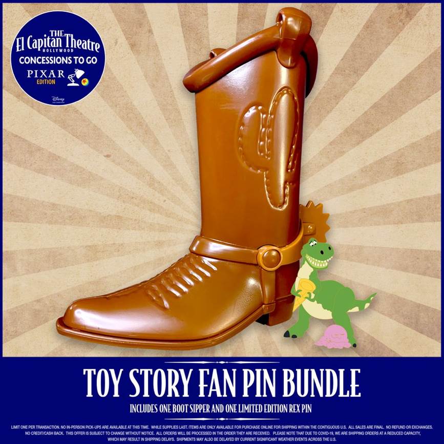 - The newest concessions to be offered are from El Capitan’s Pixar series — a boot sipper, and a limited edition Rex pin from the movie Toy Story for $25.