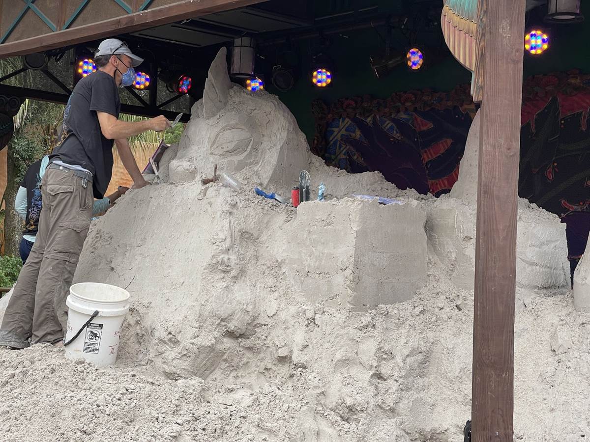- One of those limited-time events is a sand sculpture being done. This is located right across from Flame Tree BBQ at the Discovery Island Stage.