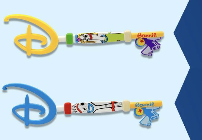 - The Forky Key features a blue Disney “D” icon on one end with a red accent and vertical picture of the character in the middle. The other end of the key has Bonnie’s name, and the Pixar Lamp and Ball to represent the key’s teeth/tines.