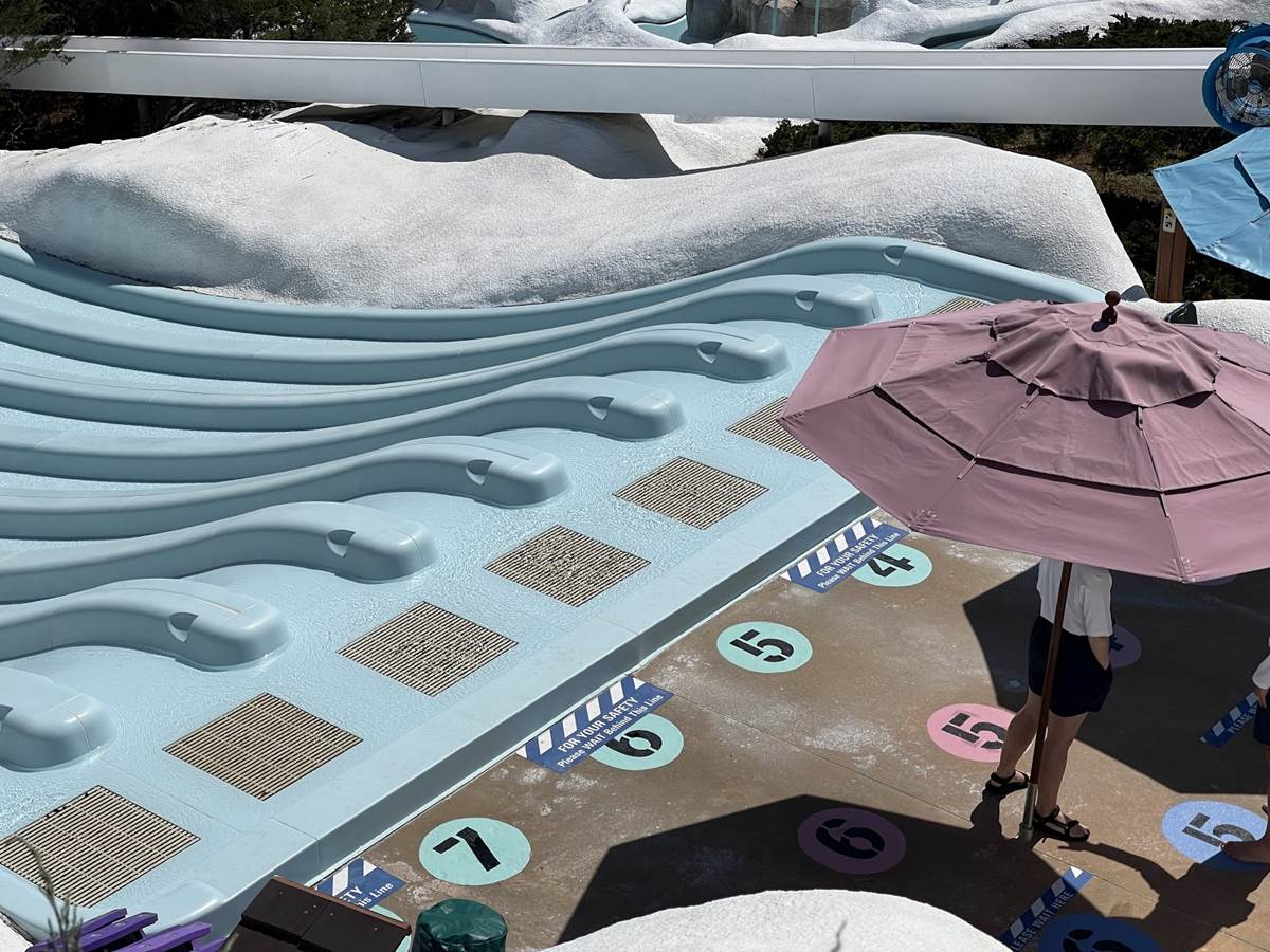 You’ll notice in the pictures that there are few people here. The weather today in Orlando, while quite pleasant, is a bit on the cool side. The temperatures range in the low 60s which for many sounds like a great day, but for those getting out of the water of a lazy river, wave pool, or splashing down after a slide, feels drastically different and uncomfortable making for a not-so-pleasant day. In fact, Universal’s Volcano Bay which also recently reopened, closed for the weekend based on the forecast. The marketing for the reopening of Blizzard Beach is also lackluster, especially when compared to other efforts of Walt Disney World, and even other area parks, so word might not be out yet that “the only ski resort on the meltdown” is open once again.