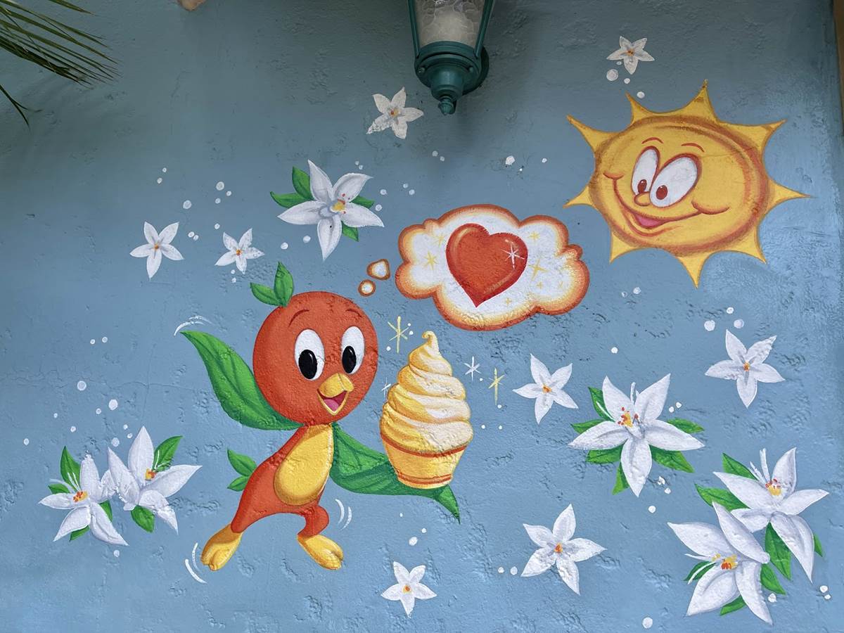 Magic Kingdom unveiled a new Orange Bird wall adjacent to the Sunshine Tree Terrace on March 2nd and today, our Florida correspondent Jeremiah Good was able to see it in person. The artwork teased by Imagineer Zach Ridley didn’t show the smiling sun or what would be inside the Orange Bird’s thought bubble.
