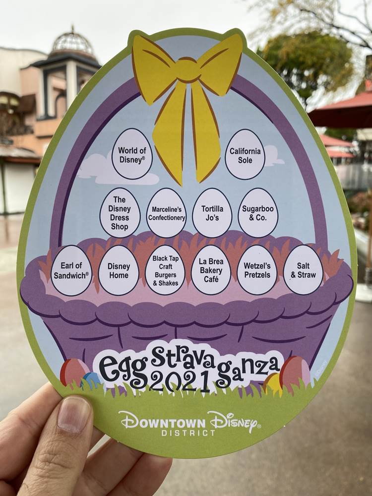 With Easter coming up, Downtown Disney is currently inviting guests to take part in Eggstravaganza 2021, an Easter egg hunt throughout the shopping and dining district. Guests pay a fee of $7.99 to receive a card featuring locations and character stickers. When they find which egg is located at each location, they place the corresponding sticker on their card. When they’re finished, guests can pick up a decorative character egg.
