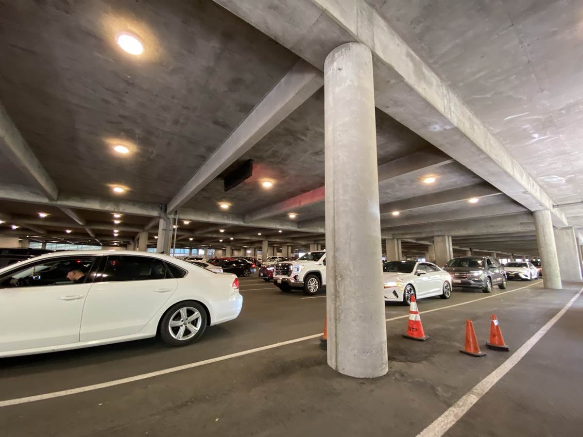 One new thing we noticed was the addition of sensors in the garage that indicate how many spaces are available on the level/in the row. We’ve also noticed the trash cans, also similar to lessons learned in Florida have been propped open to lessen the amount of touching on the surface.