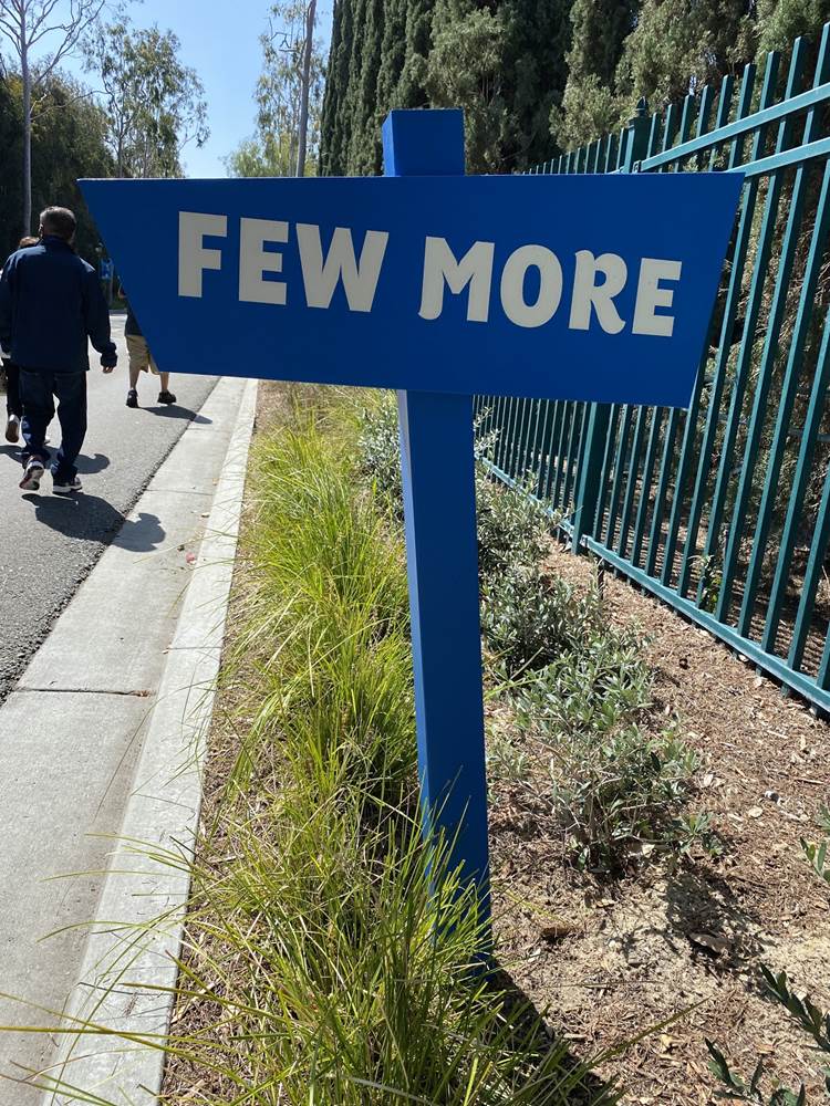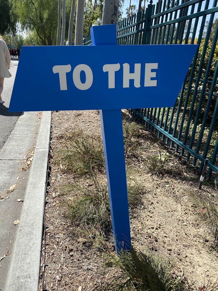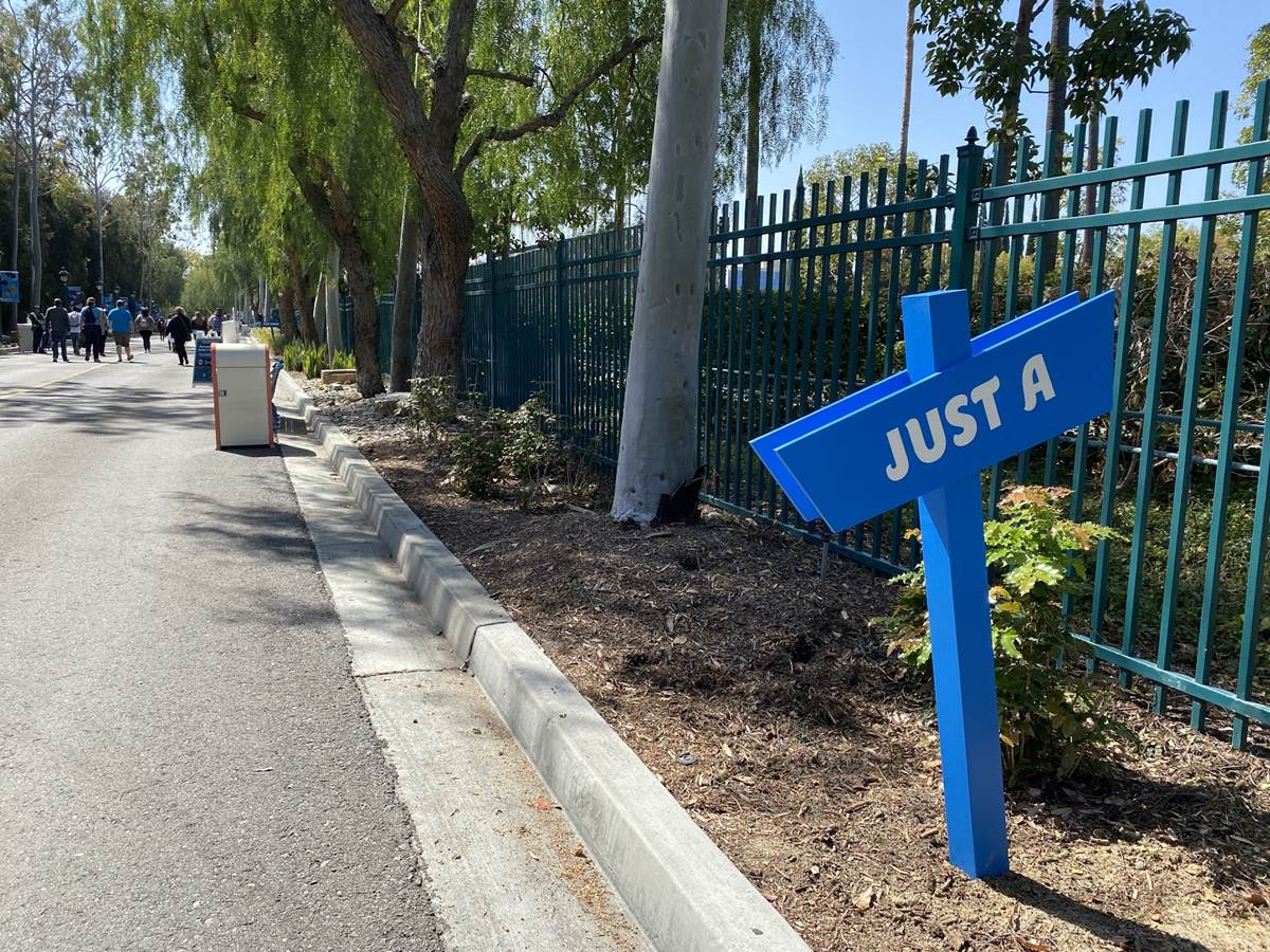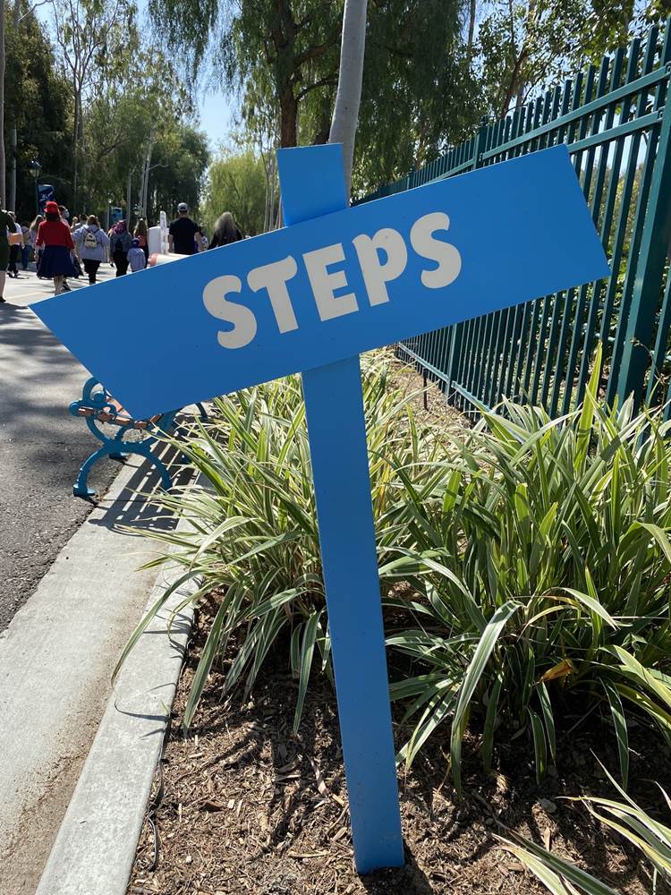 After the temperature check the long walk begins. Parking trams aren’t running during this event, so the lane has become a dedicated walkway into the resort. It’s a good thing the temperatures are taken at the garage, otherwise the walk in the Southern California heat could lead to an abundance of guests not being able to get in, at least without a rest and recheck. Along the walk are numerous billboards advertising and welcoming those to the Touch of Disney event, and as you get closer to the resort proper, designs featuring favorite characters and stylized park icons. There are also little road signs promising a churro stand in the distance.