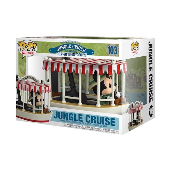 - “Set sail for a wild adventure! The jungle can be a dangerous place, but you're sure to have a few laughs with Mickey at the helm! This Jungle Cruise Skipper Mickey with Boat Pop! Vinyl Vehicle comes package in a window display box.”