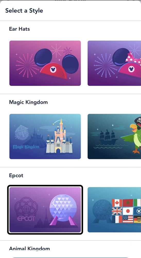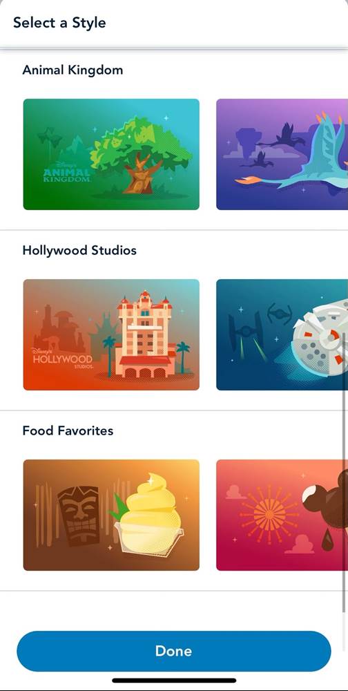When creating your Disney MagicMobile Pass, you not only select which member of your party it’s for, but also have some flexibility to customize the image on the digital card.