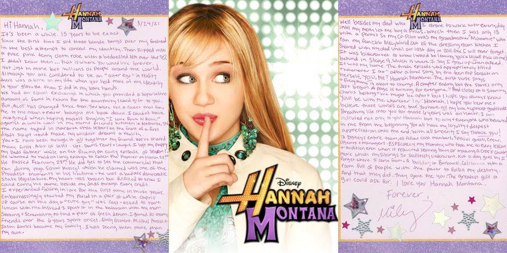 Miley Cyrus Shares a Hand-Written Letter to “Hannah Montana” on 15th Anniversary of Disney Channel Sitcom