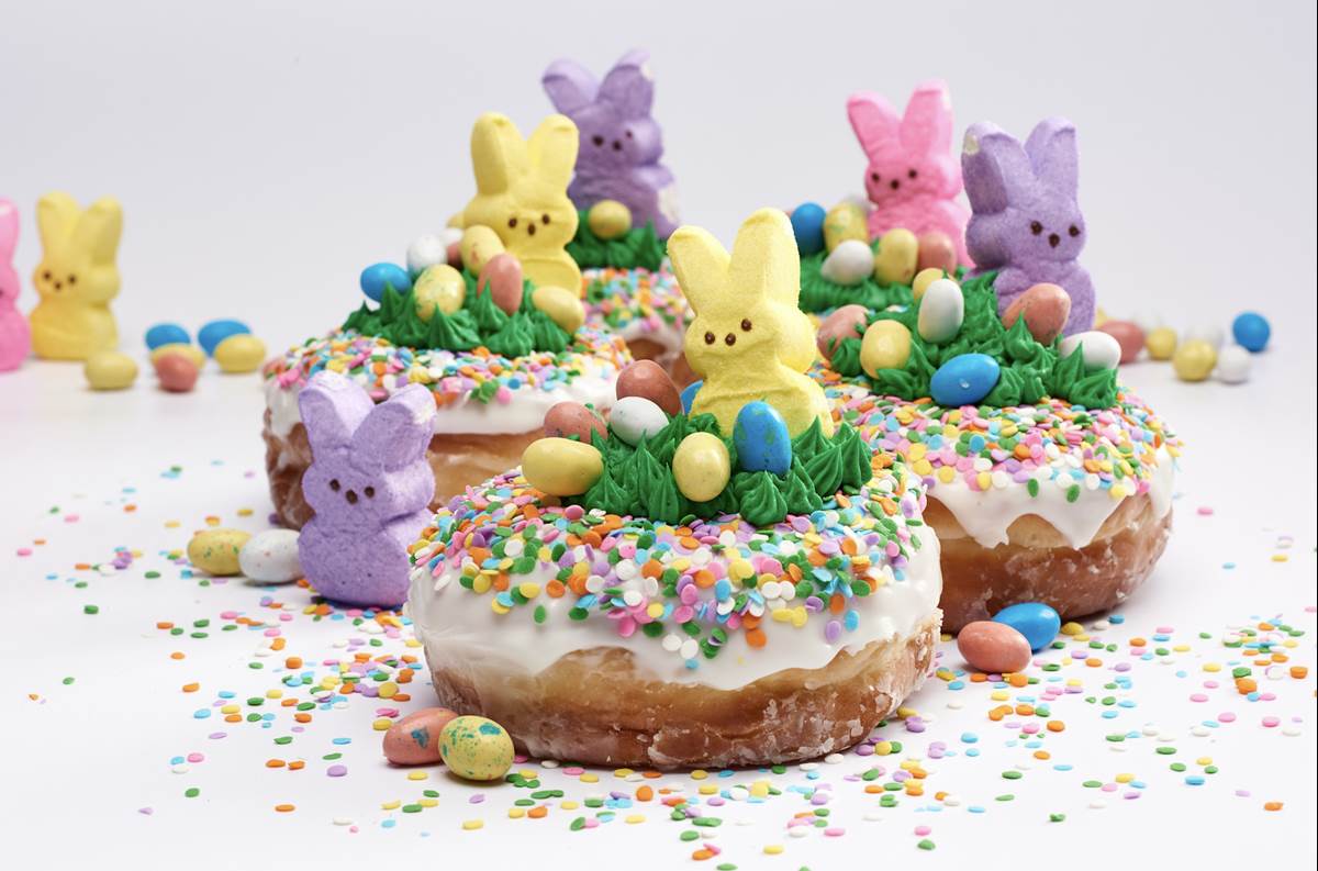 - Available March 29th through April 4th, the "Rollin With My Peeps" donut features a glazed donut drenched in vanilla frosting topped with pastel candy decorations, green buttercream, malted milk balls and a Peep!