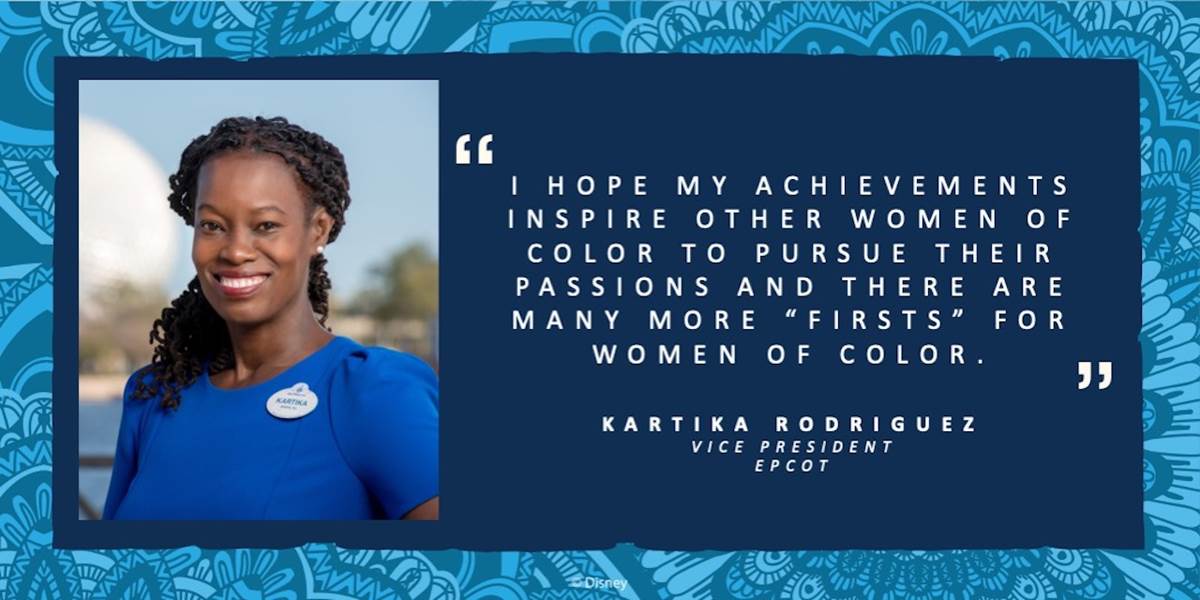 - Kartika is making history as the first Black, female vice president to lead a Walt Disney World theme park, previously serving as General Manager of EPCOT Operations the past five years.